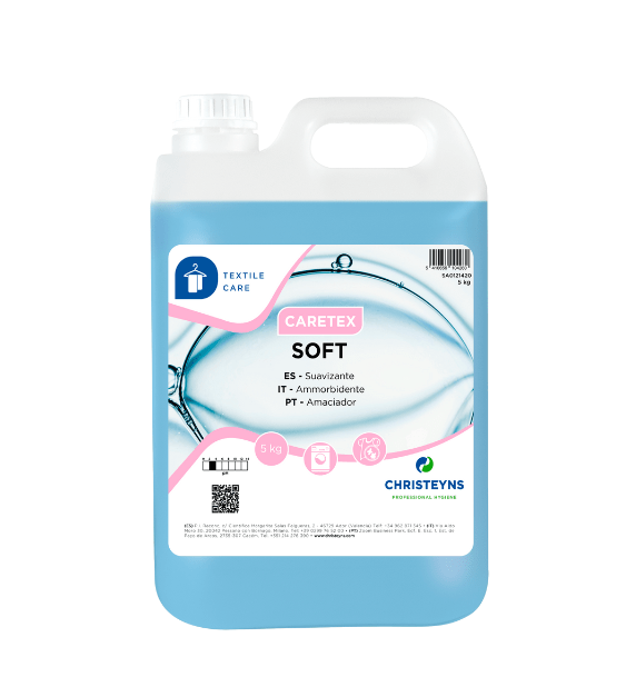 CARETEX Soft este un balsam textil concentrat, formulat special pentru a oferi hainelor un aspect moale și plăcut, reduce efectul de electricitate statică și facilitează călcarea. Ideal pentru uz profesional (spălătorii industriale, hoteluri, restaurante) și uz casnic, produsul contribuie semnificativ la protejarea fibrelor textile, păstrând calitatea și aspectul hainelor după fiecare spălare.