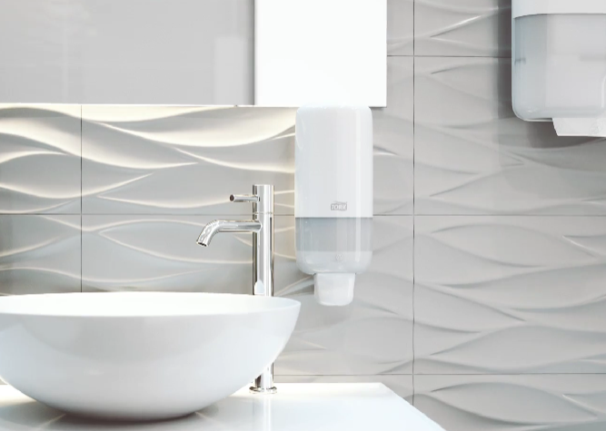 Tork Dozator săpun spumă 1l - Se potrivește în locații cu trafic mediu și mare, are o capacitate generoasă de aproximativ 2500 utilizări.