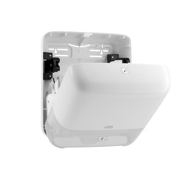 Tork Dispenser prosop matic - dispenser de prosoape pentru mâini cu design modern, este ușor de întreținut și asigură funcționarea bună a toaletelor aglomerate, reducând consumul prin dozarea prosoapelor porție cu porție.